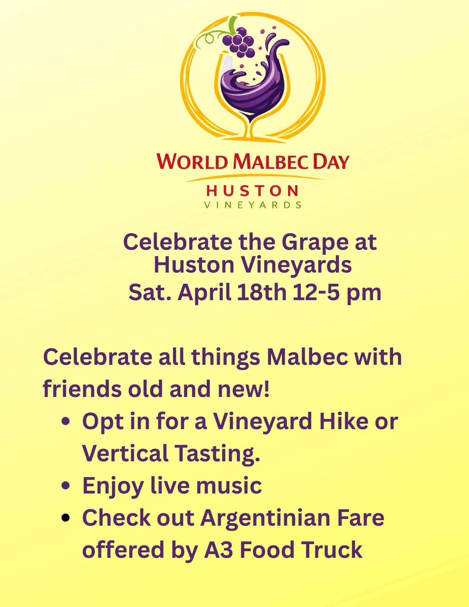 Huston Vineyards – Malbec Fest — Wine • Food • Adventure